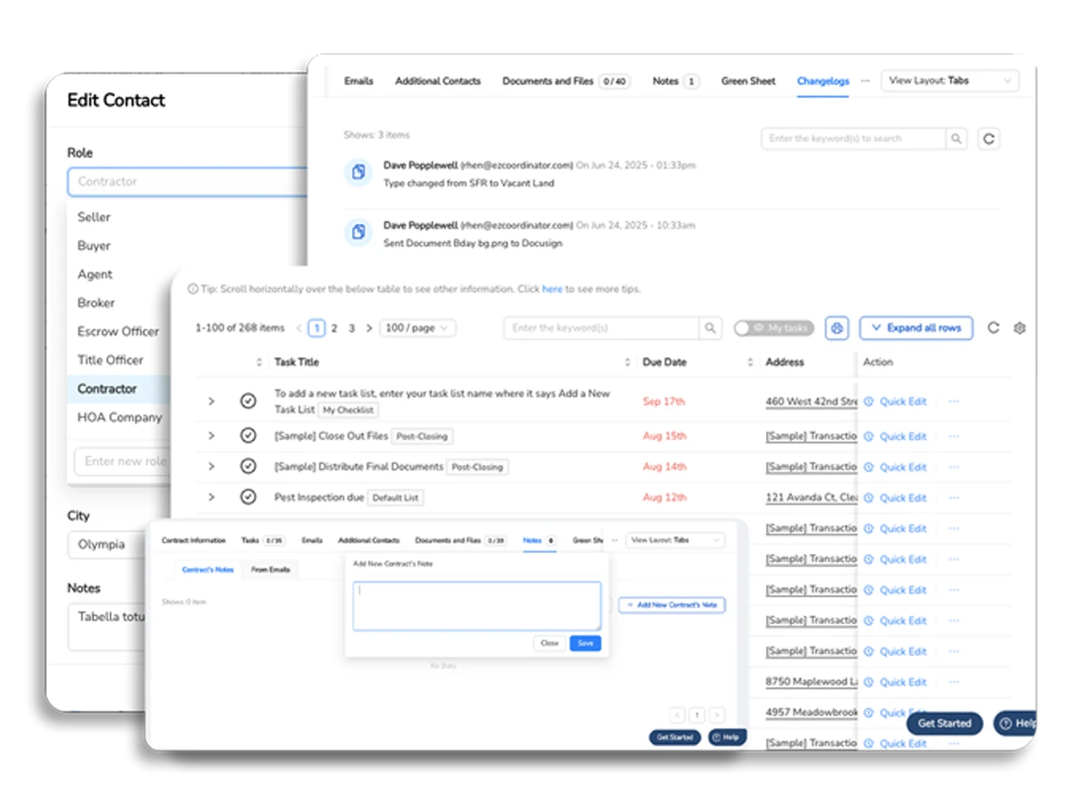 Add your transaction details, contacts, and deadlines in minutes. EZCoordinator keeps everything structured so you can start managing deals right away.