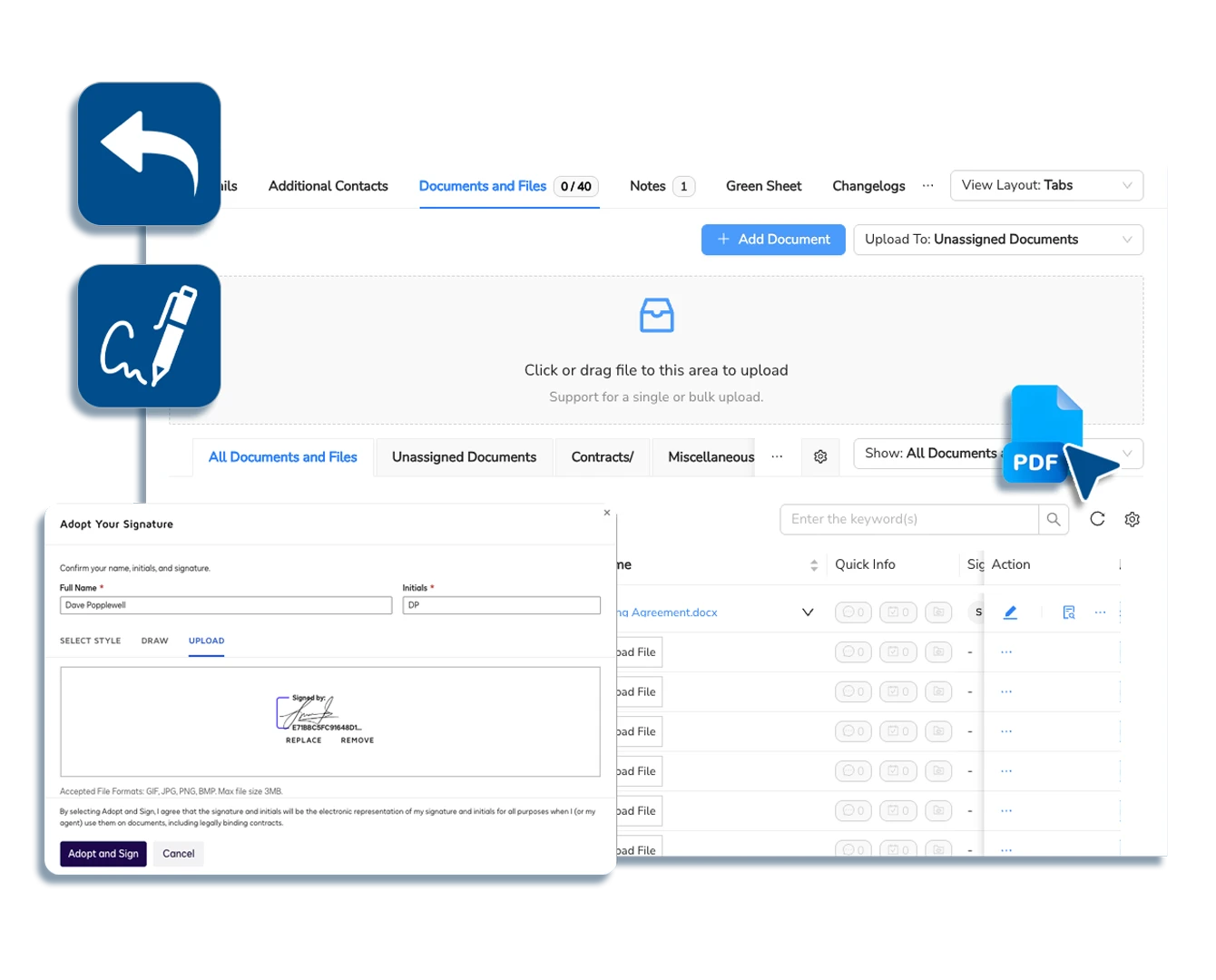 Drag and drop files, send them for signature, and collaborate in real time — all within one secure workspace.